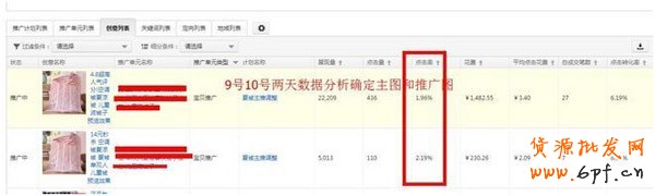 1、直通車新開來兩個計劃測試不同款式產(chǎn)品圖片點擊率數(shù)據(jù)分析。