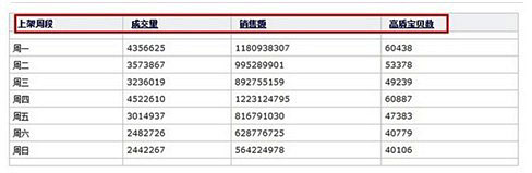 通過(guò)這些數(shù)據(jù),我們就可以知道哪天的哪個(gè)時(shí)間段的成交最多,哪天的哪個(gè)時(shí)間段的高質(zhì)量寶貝數(shù)最多,哪天的哪個(gè)時(shí)間段的競(jìng)爭(zhēng)最小。