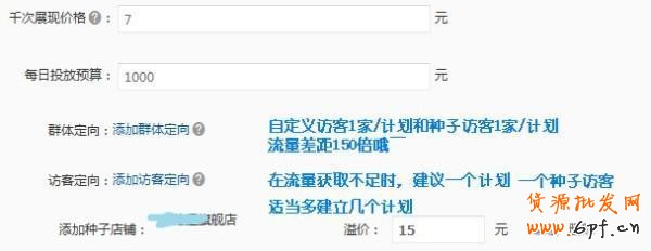 新建多個(gè)訪客定向——單個(gè)種子訪客一個(gè)計(jì)劃,預(yù)算500-1000一個(gè)計(jì)劃,CPM溢價(jià)調(diào)低!