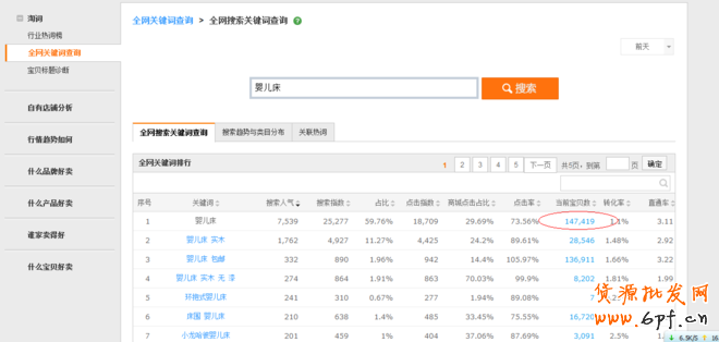直通車中重點(diǎn)推 嬰兒床這個(gè)詞 排名多少名呢?