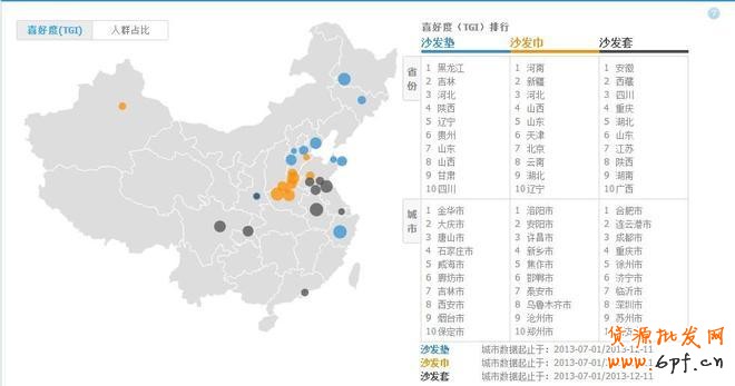 從圖中可以看出,我們的沙發(fā)墊目前訪客地區(qū)占比最高的為華東和華北區(qū),西北也有兩省入圍,那么只要我們迅速的找準客戶所在地區(qū),我們就可以完美投放了。因為直通車是可以選擇投放地域的。