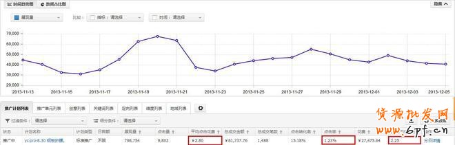 其實看數(shù)據(jù),PPC是一直在降低的,而且投入產(chǎn)出比一直在上升,點擊率本來是一直在上升,由于雙11的影響,節(jié)后點擊率出現(xiàn)了一些不穩(wěn)定,但是還是比較高。