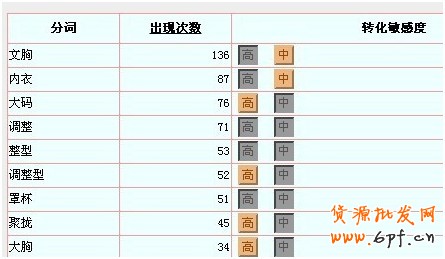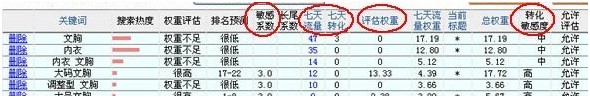 例如對于一款大碼文胸,大碼、大胸是轉(zhuǎn)化敏感度高的,而文胸、內(nèi)衣是轉(zhuǎn)化敏感度偏中等的。雖然量子數(shù)據(jù)能看出哪些關(guān)鍵詞帶來了轉(zhuǎn)化,但有許多偶然轉(zhuǎn)化的原因非常復雜,不一定與寶貝相關(guān)(有些轉(zhuǎn)化詞甚至是完全無關(guān)的),而許多未有轉(zhuǎn)化數(shù)據(jù)或者未有流量的關(guān)鍵詞卻很有高轉(zhuǎn)化潛力。因此轉(zhuǎn)化敏感度不能通過量子數(shù)據(jù)判斷,必須人工評估。