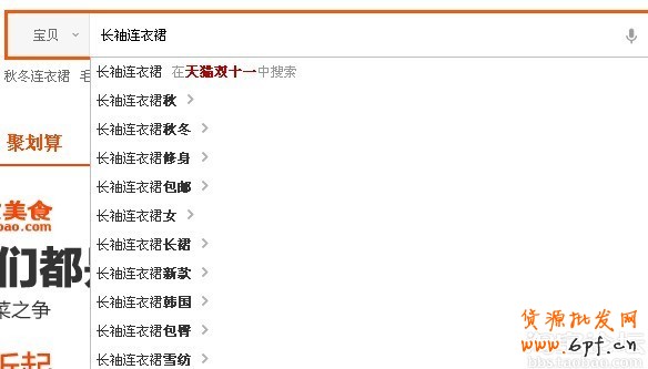 命名的方法有很多種,論壇的教程也很多,我所用的方法是直接利用淘寶搜索欄!比如,我賣的衣服為“長袖連衣裙”,那就根據(jù)這個屬性,在淘寶首頁,輸入“長袖連衣裙”,那么,出來的熱詞就非常的多!如圖: