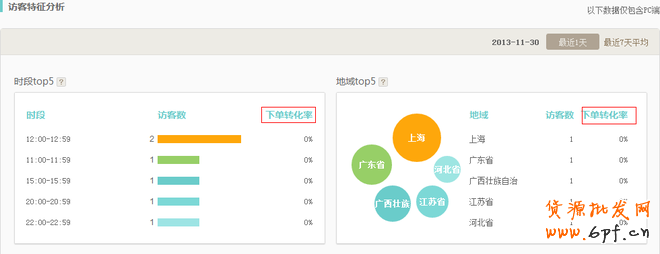 時段TOP5:通過數(shù)據得出轉化較高的幾個時間段,對寶貝上下架是否可以做出一個調整?