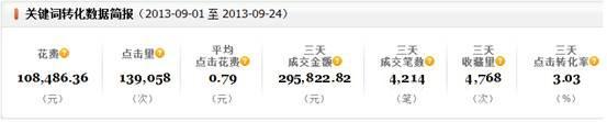 2、轉(zhuǎn)化率。轉(zhuǎn)化率應(yīng)該是該店直通車操作中最嚴(yán)重的問(wèn)題,但是該店主一直將原因歸咎于產(chǎn)品本身,而忽視了直通車的精準(zhǔn)性,所以本篇也花大篇幅在提升轉(zhuǎn)化率上。