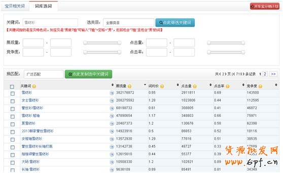 搜索框內(nèi)直接黏貼寶貝詳情頁(yè)鏈接查找相關(guān)詞,系統(tǒng)會(huì)根據(jù)寶貝標(biāo)題屬性等抓取Top20w熱搜詞;也可以到詞庫(kù)根據(jù)關(guān)鍵字或者類目選詞。搜索結(jié)果可以根據(jù)展現(xiàn)量,推薦度,點(diǎn)擊率等維度進(jìn)行排序批量選擇復(fù)制,一鍵貼到直通車后臺(tái)。