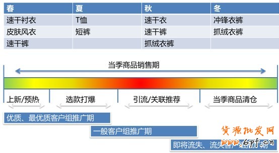 客戶管理策略有了后還得有戰(zhàn)術(shù)。X在各季推廣產(chǎn)品都會不同,春夏主推速干系列的衣褲,初夏時會推廣T恤、短褲等商品,到了秋冬季節(jié)會主推抓絨、沖鋒衣褲等。結(jié)合每類商品銷售規(guī)律又將不同的客戶組部署到整個商品銷售周期內(nèi)。在商品銷售前期積累銷量時,可以對優(yōu)質(zhì)客戶進(jìn)行宣傳推廣,能夠得到較高的響應(yīng),并且降低引流促銷量的成本;在商品熱銷期則可以推薦一般客戶購買當(dāng)季商品,同時做一些搭配套餐以提高客單價,這樣做不但提高了銷量而且還維護客戶;在商品銷售末期,則引入即將流失或流失客群,以高優(yōu)惠力度吸引,盡可能地挽回客戶。