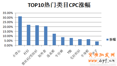 根據(jù)上述二級類目的直通車數(shù)據(jù)及對比浮動情況,結(jié)合麥苗用戶的數(shù)據(jù)表現(xiàn)。我們對換季時節(jié)中,競爭比較激烈的女裝二級類目,進行了熱門類目TOP10排行。僅供女裝掌柜們參考: