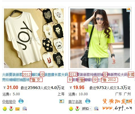 如果買家想購買一件女款T恤,可能會輸入“2012 女款 T恤”,