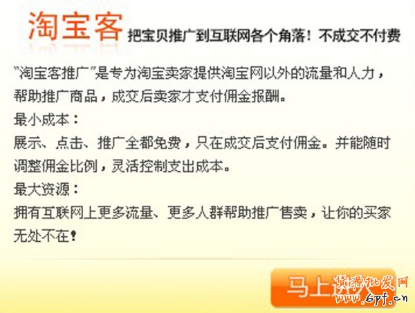 這是小編推薦的一種推廣方式,因?yàn)樗呛蟾顿M(fèi)業(yè)務(wù),推廣展示和點(diǎn)擊推廣全都免費(fèi),只有在交易完成之后才支付淘客傭金,并能隨時(shí)調(diào)整傭金比例靈活控制支出成本,雖然賺的少了,但是總比不賺強(qiáng)是吧,這種推廣方式值得推薦。