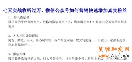 未經(jīng)騰訊書(shū)面許可利用其他微信公眾帳號(hào)、微信帳號(hào)和任何功能或第三方運(yùn)營(yíng)平臺(tái)進(jìn)行推廣或互相推廣的,包括但不限于:僵尸粉刷粉、公眾帳號(hào)互相推廣、普通微信帳號(hào)通過(guò)微信普通消息、附近的人打招呼、漂流瓶、搖一搖等任何形式推廣公眾帳號(hào),以及利用第三方平臺(tái)進(jìn)行互推等。