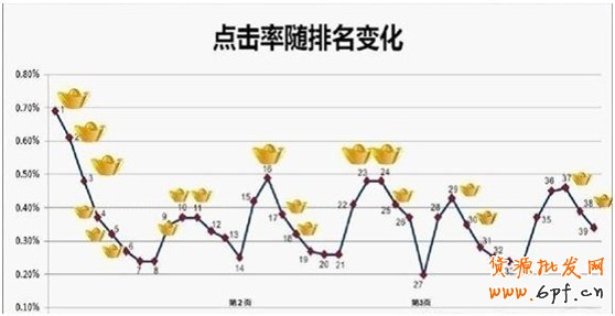 經(jīng)過多個瀏覽器測試排名在15、16名,按圖片以此類推深紅色位置的圖片點擊率比較高,至少高于關鍵詞的平均點擊率。如果你的關鍵詞點擊率沒有達到,只能提高出價,而提高出價,必然增加推廣投放費用。這次的圖片僅僅在女裝類目測試得出。所以大家在調(diào)整關鍵詞排名的時候,請根據(jù) 自己推廣預算和點擊轉(zhuǎn)化來是否考慮把自己的關鍵詞排名提前。