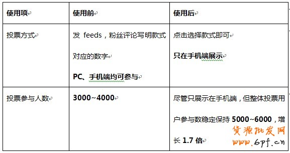 從用戶角度來看,不是每件商品都能得到買家的喜愛,每個(gè)人會(huì)有每個(gè)人的喜好,而“投票”這個(gè)權(quán)利會(huì)讓用戶覺得有“做主”的權(quán)利,而且回復(fù)兩個(gè)數(shù)字是非常簡(jiǎn)單的操作。而從賣家端看,有些商品還不到上新期,有足夠的時(shí)間可以做一些改進(jìn)和規(guī)劃,何樂而不為?