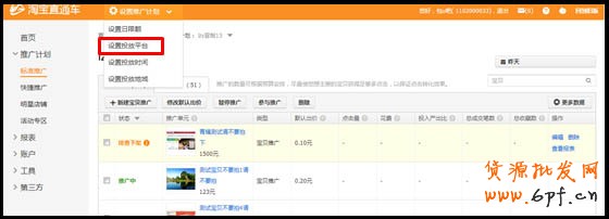 2.進(jìn)入計劃后,在屏幕上方“設(shè)置推廣計劃”中選擇“設(shè)置投放平臺”