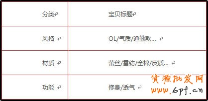 把突出寶貝特性的詞比如品牌、特色、功能等寫在標(biāo)題上,可以參考下方表格的分類,具體的詞可以參考直通車關(guān)鍵詞。