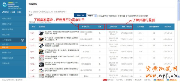 我們一般通過第三方軟件搜索關(guān)鍵詞找出所有出售同樣商品的同行賣家,對比自己的店鋪等級(jí)和30天銷量來確立一個(gè)比較合理的競爭對手圈。對這些對手的下架時(shí)間進(jìn)行了解和監(jiān)測。