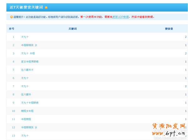 我們通過(guò)軟件可以看到最近7天,寶貝的流量情況,包括免費(fèi)的搜索流量是多少、付費(fèi)流量是多少、關(guān)鍵詞是什么有了關(guān)鍵詞,我們就可以把最近7天沒(méi)有流量的關(guān)鍵詞替換掉,每7天一優(yōu)化,從而引爆搜索流量。