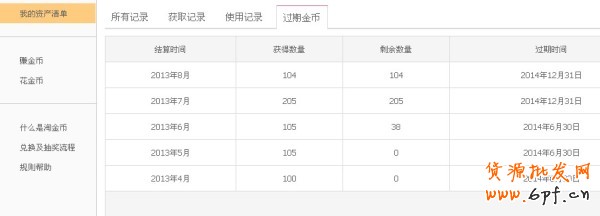 淘金幣是有期限的,點(diǎn)開(kāi)“會(huì)員中心——我的淘金幣——我的資產(chǎn)清單”里可以查看過(guò)期時(shí)間。