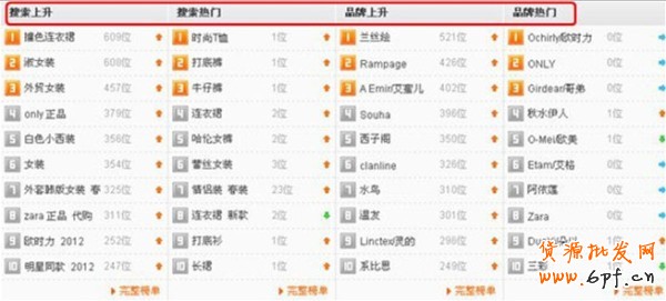 淘寶排行榜整合全網(wǎng)資源,每日給出各個(gè)類(lèi)目下熱門(mén)搜索詞和品牌詞,上升的搜索詞和品牌詞。無(wú)論選擇關(guān)鍵詞還是選寶貝都可參考。