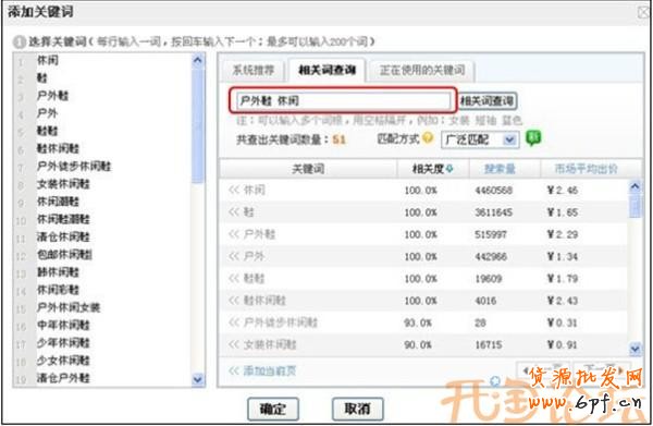 最簡(jiǎn)單、最方便也是目前使用率最高的選詞方法??筛鶕?jù)系統(tǒng)推薦結(jié)果的相關(guān)度、搜索量和市場(chǎng)平均出價(jià)三個(gè)指標(biāo)挑選合適的關(guān)鍵詞。