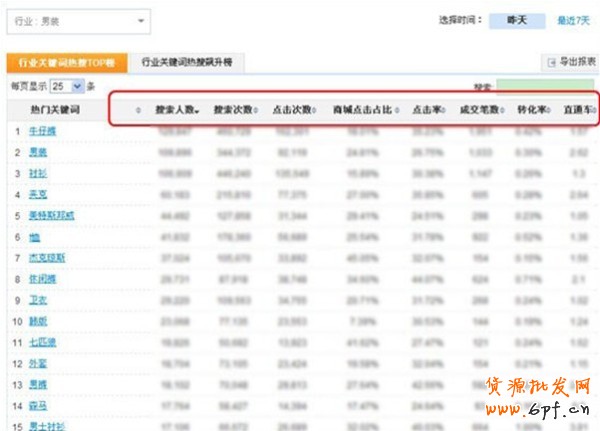 數(shù)據(jù)魔方專(zhuān)業(yè)版淘詞功能,提供了行業(yè)內(nèi)熱搜的top關(guān)鍵詞和近期飆升關(guān)鍵詞。是目前所有選詞方法中參考指標(biāo)最全面的,包括了搜索人數(shù)、搜索次數(shù)、點(diǎn)擊次數(shù)、商城點(diǎn)擊占比、點(diǎn)擊率、成交筆數(shù)、轉(zhuǎn)化率、直通車(chē)點(diǎn)擊價(jià)格等一系列指標(biāo)。