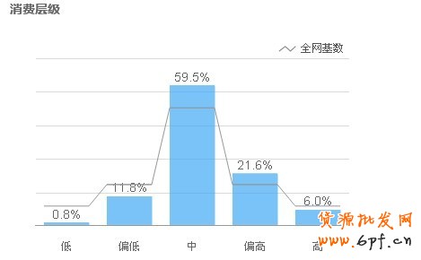 再看消費能力,可以大致分為低、偏低、中等、偏高、高這5個層級。查看淘寶指數(shù)不難發(fā)現(xiàn),在最近七天的成交指數(shù)中,消費能力中等的占59.5%,消費能力偏高的層次占21.6%,排名第二。通過以上分析,消費能力中等客戶價值度高,根據(jù)這個數(shù)據(jù)就可以輕松確定店鋪主推商品的定價區(qū)間。