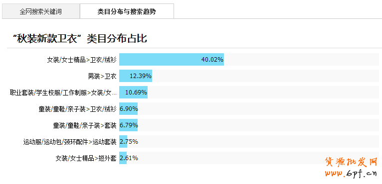 2、關(guān)鍵詞的類目分布詳情