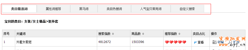 類目詞、屬性詞、黑馬詞、類目熱詞、人氣寶貝常用詞、海量詞庫搜索