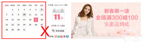 大家覺得這種日歷牌有意義嗎,而且他不是真正的日歷牌,只是在某兩個數(shù)字上插入一個鏈接而已,而且商家把這種日歷牌放到了店鋪的第二屏或第三瓶,這么關(guān)鍵的位置應(yīng)該出現(xiàn)我們的產(chǎn)品,判斷是否用很簡單,我們只需要看裝修熱力圖的數(shù)據(jù)分析(量子統(tǒng)計(jì))里面到底有多少人關(guān)注這個東西,如果沒有人關(guān)注,一定要刪除。