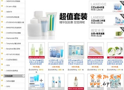 套裝商品,組合商品信息展示。套裝產(chǎn)品采用了“留白”的方法。當(dāng)一個(gè)物體的周圍什么都沒(méi)有時(shí),它的“孤獨(dú)性”反而能吸引人的注意。請(qǐng)注意,到這個(gè)時(shí)候,欄目左邊才出現(xiàn)了很多店鋪首當(dāng)其沖的按品牌分類商品的導(dǎo)航。沖著品牌來(lái)的顧客固然很多,但沖著功效、作用來(lái)的顧客更多。所以,如果你的店里品牌較多,與其把品牌分類放在重要位置,不如把按照熱銷指數(shù)分類,按照功效分類,按照搜索排名分類等個(gè)性化分類,放在更重要的位置上。