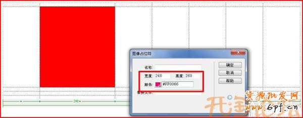 在【寬度】、【高度】中輸入相應的尺寸大小,接著在【顏色】項目中添加上顏色,這個步驟的主要作用是為了區(qū)分各個單元格的圖像占位符,如此一個圖像占位符就做成了。