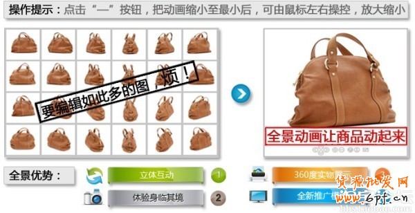 例如,一個包包的展示,需要不同的角度拍攝,可以利用flash讓其串聯(lián)起來,又節(jié)約了頁面,有增加了感官體驗。
