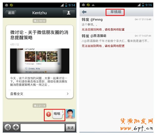 比如,微信的消息發(fā)送在沒聯(lián)網(wǎng)的情況下發(fā)送會顯示嘆號保存在手機端,聯(lián)網(wǎng)后只需重新發(fā)送即可,不需要重新鍵入信息。新浪微博在網(wǎng)絡(luò)不好的情況下進行轉(zhuǎn)發(fā)或評論,相應(yīng)的信息也會自動保存在草稿箱,聯(lián)網(wǎng)后操作即可。