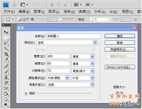 第一步,打開ps軟件,點擊“文件”選擇“新建”一個圖層,并調(diào)整好圖層的寬度和高度。具體設置的參數(shù)如下: