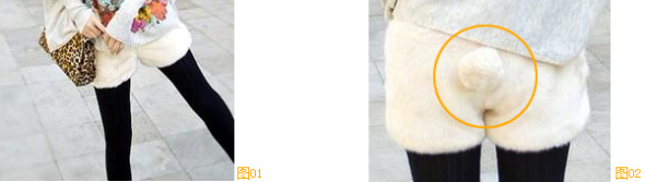 這件短褲從(圖01)看上去是比較常規(guī)的款式,但如果買家只看到這一張圖而沒有(圖02),然后就購買的話,最后一定會(huì)驚訝的,因?yàn)椋憾萄澅趁嬗袀€(gè)小尾巴的。