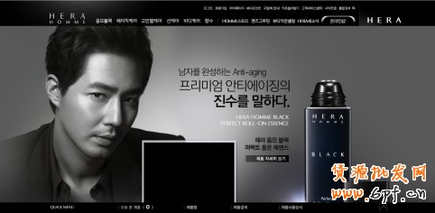 Hera男士化妝品網(wǎng)站采用黑色調(diào)設(shè)計,金屬光感非常強(qiáng)。