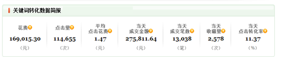 上圖是掌柜在11年做直通車(chē)的一個(gè)數(shù)據(jù),下面是在14年5月份一整個(gè)月做直通車(chē)的一個(gè)數(shù)據(jù)圖。單純從點(diǎn)擊話費(fèi)就可以看出來(lái)是在成倍增長(zhǎng)。另外一個(gè)男裝的數(shù)據(jù)就更明顯了,在雙11當(dāng)天的一個(gè)數(shù)據(jù)圖:
