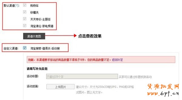 以天天特價(jià)發(fā)布為例,發(fā)布渠道有默認(rèn)渠道和自定義渠道之分,(若賣家不填寫好的產(chǎn)品信息,渠道一般都不進(jìn)行展現(xiàn)的)