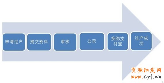 申請過戶——提交資料——審核——過戶公示——換綁支付寶——過戶完成