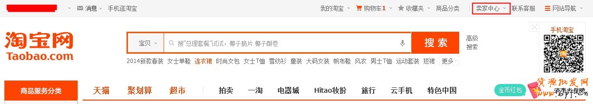 第一步:登陸“淘寶網(wǎng)”首頁,點(diǎn)擊“賣家中心”;