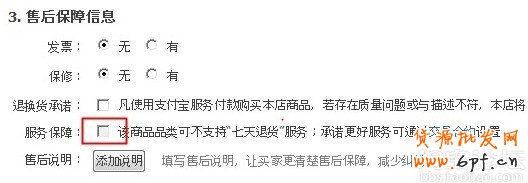 5)去除“售后保障信息-服務(wù)保障”下的勾選