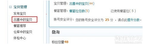 2)點(diǎn)擊“寶貝管理”下的“出售中的寶貝”