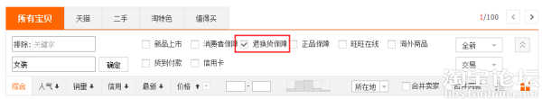 參加退貨承諾后,在前臺搜索時只要勾選“退換貨保障“,就會優(yōu)先出現(xiàn)有打上退貨承諾標簽的賣家。