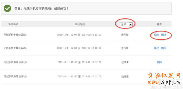 3)設置完成后,可在手機專享價的首頁看到已設置的所有活動列表,在活動開始前和進行中可編輯活動,活動結(jié)束后可查看或刪除活動。