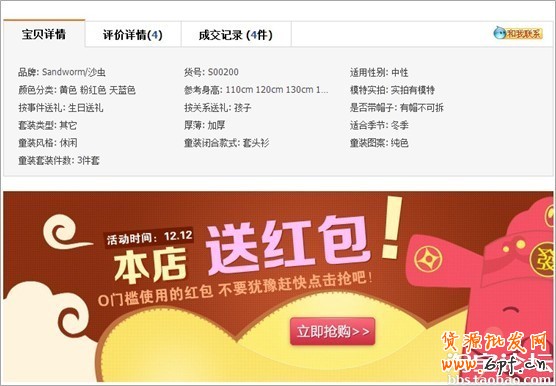 商品詳情頁:親可以在店鋪所有寶貝的詳情頁加店鋪紅包banner,直接鏈接到掌柜的1212!