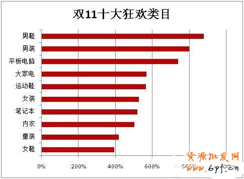 狂歡類目指的就是雙11當(dāng)天受益增長(zhǎng)最大的類目?;旧吓c服裝相關(guān)的類目都有上榜:男裝、女裝、男鞋、女鞋、童裝、內(nèi)衣、運(yùn)動(dòng)鞋。這些類目占據(jù)了狂歡排行榜里面的多數(shù)席位。其中,女裝的增幅排名雖然相對(duì)靠后,但是考慮到女裝龐大的規(guī)模,女裝依然是雙11的最大受益者。