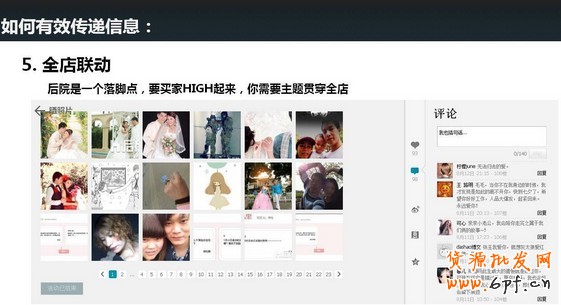 通過店鋪內(nèi)老客戶的曬圖行為,一方面聚集興趣相同的買家,另一方面營造熱鬧的氣氛,讓新買家第一時間感覺到你家店鋪有品位。