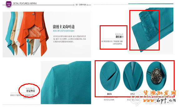6、接下來就是模特的展示了,很貼心的針對不同的顏色做出了一些搭配的推薦,包括:包包,打底衫的搭配推薦,讓客戶有足夠的想象空間來感受上身的感覺。