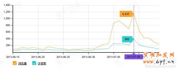 通過這個圖,可以看出我之前的流量,一直在100左右,在7月5號流量開始增加,一直持續(xù)好幾天,最高流量達到1千多。這是我之前一直不敢想的。雖然流量不多,但對于新店來說已是不小的刺激。